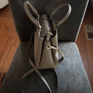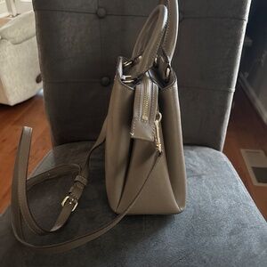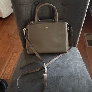 DKNY Small Paige Taupe Leather Satchel Crossbody Handbag