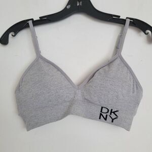 DKNY Spell Out Heather Gray Strappy Strap Lounge Bra Size Medium