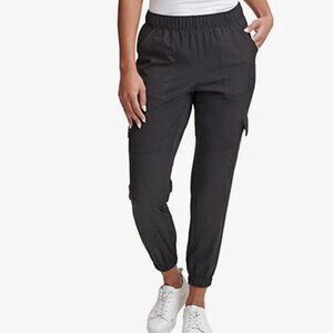 DKNY Sport Embossed Snakeskin Jogger Capri Pants Black Womens Inseam 27 in