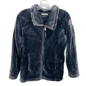 DKNY Sport Gray Fuzzy Faux Fur Zip Front Pockets Outdoor Winter Warm Jacket L