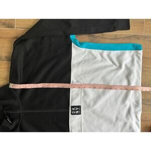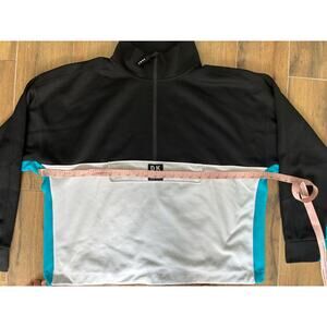 Has front pocket, half zip, long sleeve, cinch waist option.