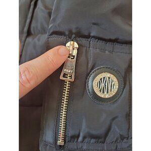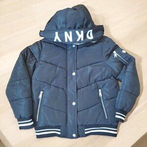 DKNY Sport Jacket Girls Size M 10/12 Black Puffer Hooded Quilted Coat Logo EUC