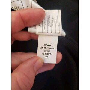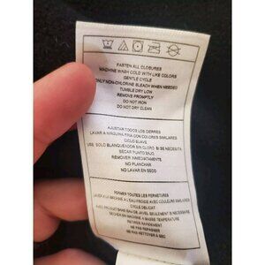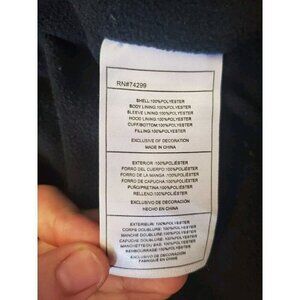 This jacket is on good condition. The outside of the jacket looks great. Some of the zippers have lost some of their silver coating, pointing to this in one of the photos. The inside of the jacket is a warm fleece material that shows some wear from use. There's an area inside of the jacket to put the child's name.
