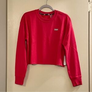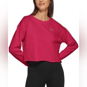 DKNY Sport Metallic Logo Cropped Pullover in Black Cherry