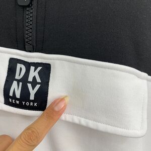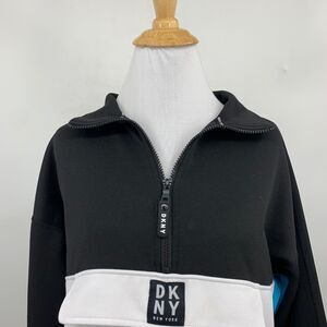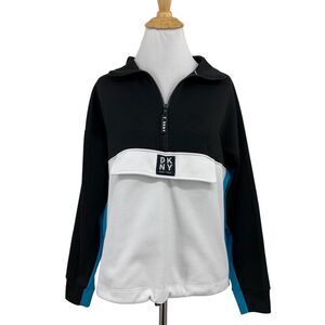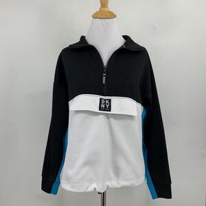 DKNY SPORT SWEATSHIRT WOMENS S SMALL BLACK WHITE COLORBLOCK HALF ZIP PULLOVER
