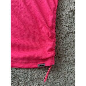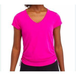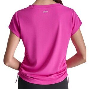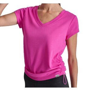 DKNY Sport Women's Tee V-Neck Short-Sleeve Tech Top M Ruched ORCHID GLO New
