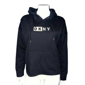 DKNY Sport Black Pigment Dyed Two Tone Logo Distressed Hoodie Women's Small NWT