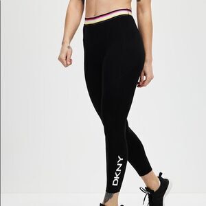 DKNY Sport Women's Black Multi-Stripe Elastic Leggings Extra Small NWT