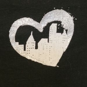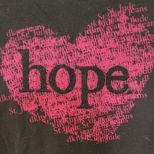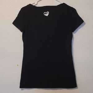 DKNY St. Judes Charity Black Tee with Pink Beaded Heart Size XS