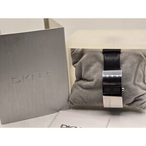 This DKNY Stainless Steel Ladies' Watch is a stylish and elegant timepiece perfect for formal occasions. The watch features a silver dial, silver bezel, and a stainless steel case with a matte finish. It is water-resistant up to 30 meters, making it a practical choice for everyday wear. The watch comes with a new battery, original box, and a 2-year manufacturer's guarantee. With its classic design and high-quality materials, this DKNY watch is a must-have for any woman's collection.