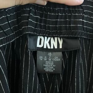 Tags: DKNY, pants, trousers, wide leg, full length, high waist, elastic back, flat front, pinstripe, striped, linen blend, linen, new with tags, NWT, career, professional, dress pants, professional, corporate, chic, tailored, resort, summer, spring, lightweight, flowing, classic, minimalist, sophisticated, power casual, large