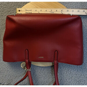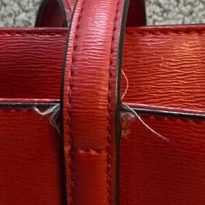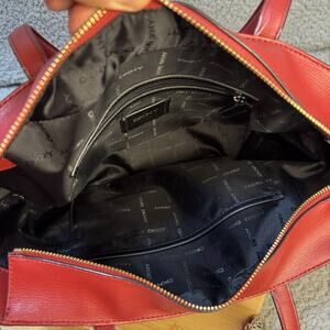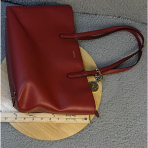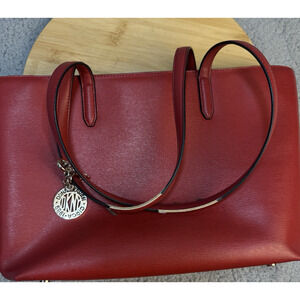 DKNY Structured Tote Shoulder Bag Womens Red Leather Logo Charm