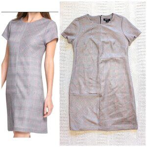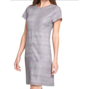 DKNY Suede Plaid Grey & Pink Mini Dress Size 6 Zip up Short sleeve Career work