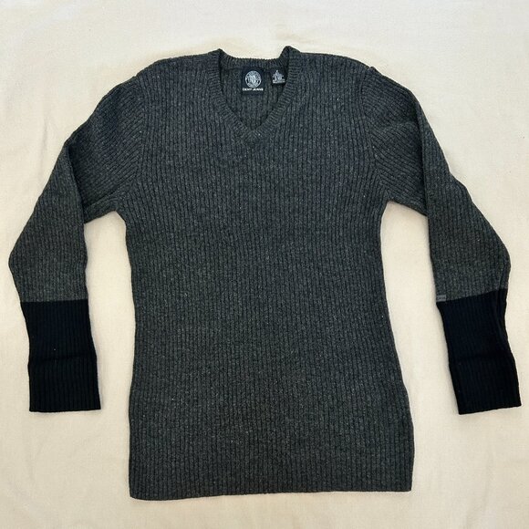 • 100% Lambswool • Pull on style • Long sleeves with banded hem and cuffs • V-neck • Approximate measurement when laid flat: 28" long; pit to pit 18" • Used