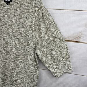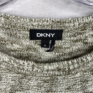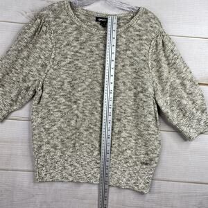 DKNY Sweater Top XL Green Heather Cable Knit 3/4 Sleeve Pullover Cotton Blend