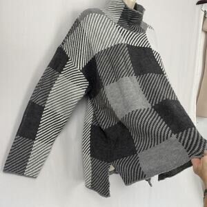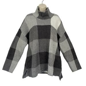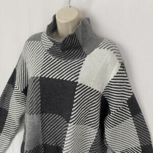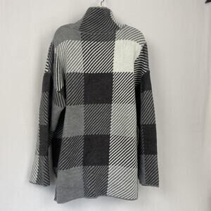 DKNY Sweater Women XL Gray Black White Buffalo Plaid Boxy Cozy Mock Neck Neutral