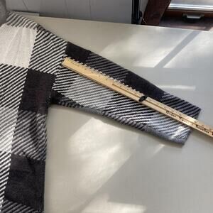 DKNY Sweater Women XL Gray Black White Buffalo Plaid Boxy Cozy Cabincore Neutral
