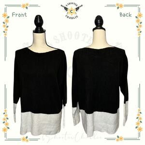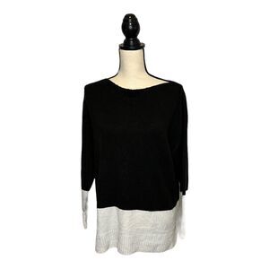 DKNY Sweater Womens Medium Stretch Relaxed Soft Knit Boat Colorblock Slit Logo