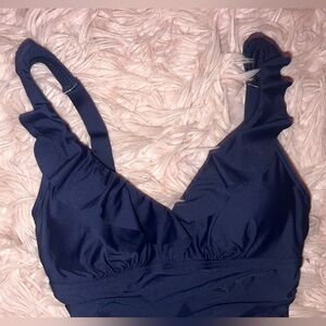 DKNY Swimsuit- One Piece Navy Blue Ruffle Plunge Tummy Control