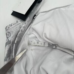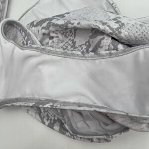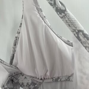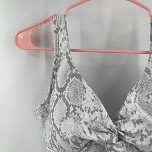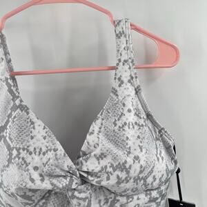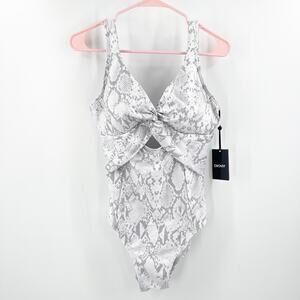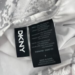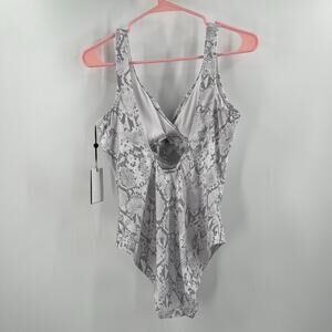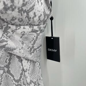 DKNY Swimsuit Size 8 One Piece NWT Gray White Scoop Back Twist Front Swim Beach