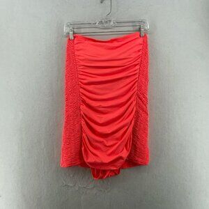 DKNY Swimsuit Women Small Neon Orange One Piece Ruched Strapless Pull On Stretch