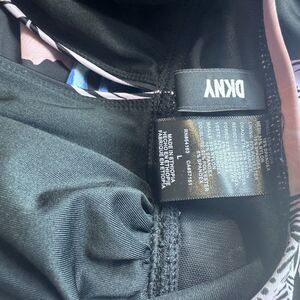 DKNY Swimsuit one piece black floral tropical hibiscus plunge halter sz L
