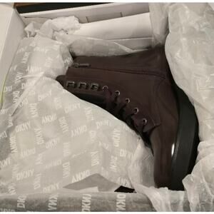 DKNY Talma Lace-Up Combat Boots in Burgundy Size 8
