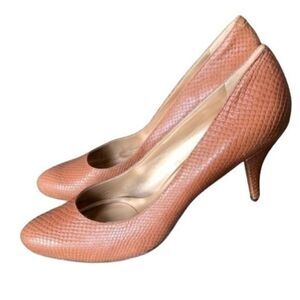 Gorgeous pair of DKNY heels size 10 in a caramel snake skin. Excellent pre-owned condition. There is one small spot on the heel (see pics).