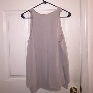 Medium Tan Flowy Top, beads/jewels around the collar and arms