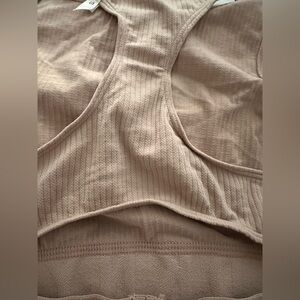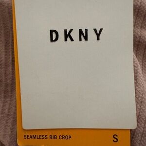 DKNY Tan Ribbed Cropped High Neck Racerback Tank NWT. Size small. Seamless bra tank.