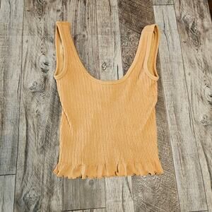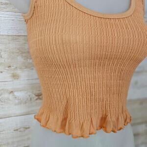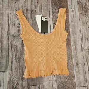 DKNY Tank Top Womens Smocked Ribbed Coral PeachRuffle Hem Cropped Boho Sexy XXS