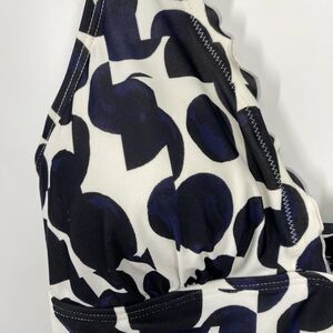 DKNY Tankini Top Womens size XL V-neck Ruffle White Black Circle Pattern