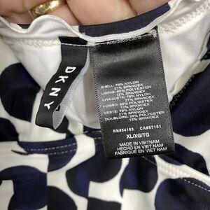 DKNY Tankini Top Womens size XL V-neck Ruffle White Black Pattern Swimsuit