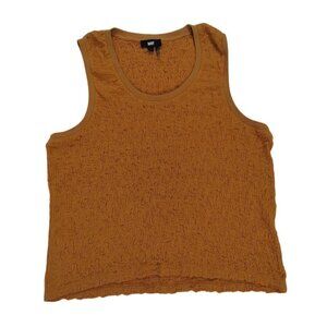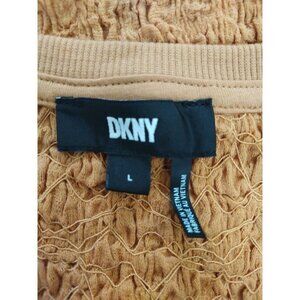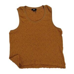 DKNY Textured Sleeveless Mustard Yellow Tank Top Womens L Cotton Blend.