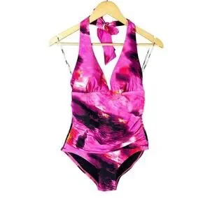 DKNY Tie-Back Halter-Style One-Piece Swimsuit Size Large