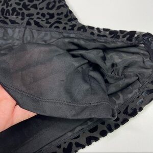 Polyester 45%/nylon 41%/spandex 14%; right panel and lining: polyester; neck trim: rayon/polyester
