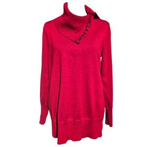 DKNY Turtleneck Side Logo Red Tunic Sweater Women's Medium