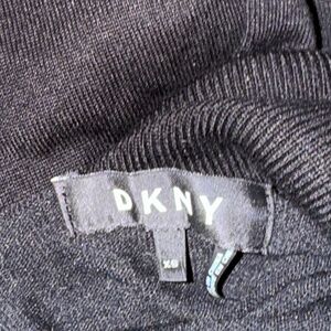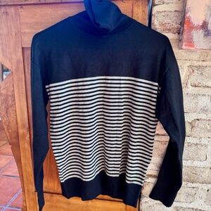 DKNY Turtleneck Sweater Long-Sleeves Knit Top, Black w/ Silver Stripes Sz. XS