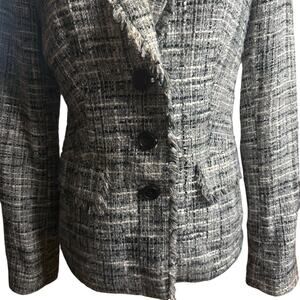 DKNY Tweed Blazer Jacket, Black Gray Frayed Edge Boucle Career, Size 4