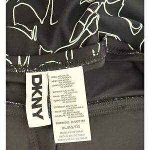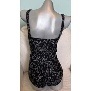DKNY Twist Tummy Control One Piece Swimsuit Size XL Black White Floral Wireless
