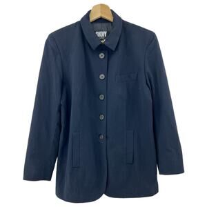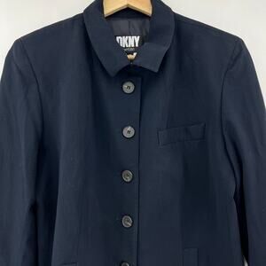 DKNY US 10 Petite Womens Navy Blue Wool Blend Fitted Blazer Jacket 5 Button Lined