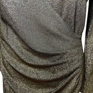 DKNY V-Neck Side Ruched Metallic-Dot Dress sz 6