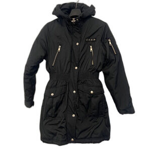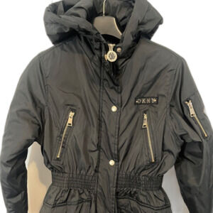 The DKNY Women's Coat in size L is a stylish and practical mid-length puffer jacket perfect for the colder months.