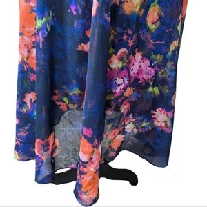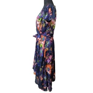 DKNY Whimsical Short Sleeve V-Neck Tie Waist Floral Chiffon Midi Dress Size 6