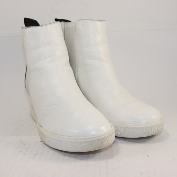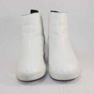 DKNY White Leather High Top Size 8.5 Logo Pull on Wedge