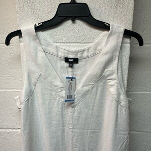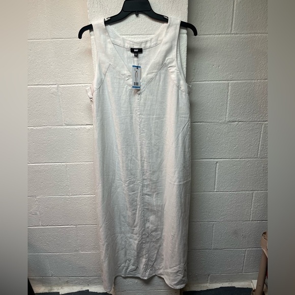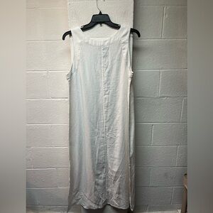 Elegant white sleeveless dress. V-neck design. Perfect for any occasion. Linen