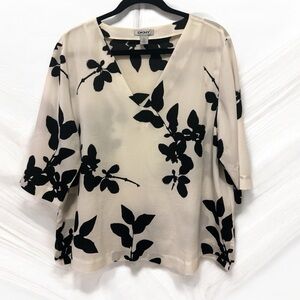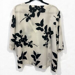 DKNY White and Black Floral Blouse with Relaxed Fit Size XL