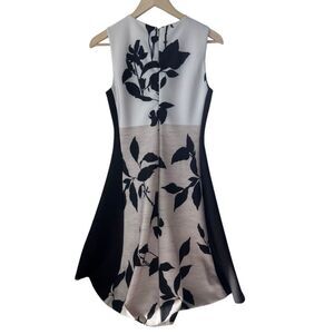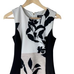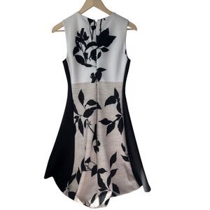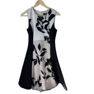 DKNY White/Beige/Black Floral Scuba A-Line Dress Sz S