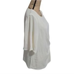 DKNY Winter White Gathered Waist Gorgeous Shirt Size Large New!!
