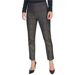 DKNY Women Black/Silver Animal Printed Low Rise Skinny Ankle Pants Size US 14